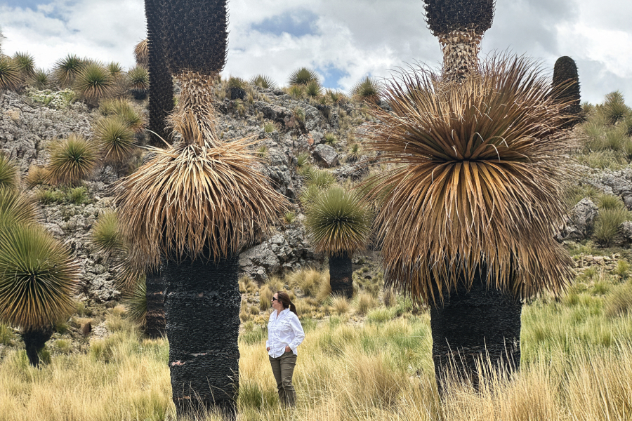 Em seguida, o caminho segue até a floresta de Puyas de Raimondi (Puya raimondii), espécie endêmica dos Andes peruanos e considerada a bromélia mais alta do mundo. Pode ultrapassar os dez metros de altura e produzir uma inflorescência com milhares de flores. O mais extraordinário, porém, é seu ciclo de vida: pode levar entre 40 e 100 anos para florescer, e o faz apenas uma vez antes de morrer. No altiplano, esta planta é vista como símbolo de resistência e paciência, uma metáfora viva do mundo andino.