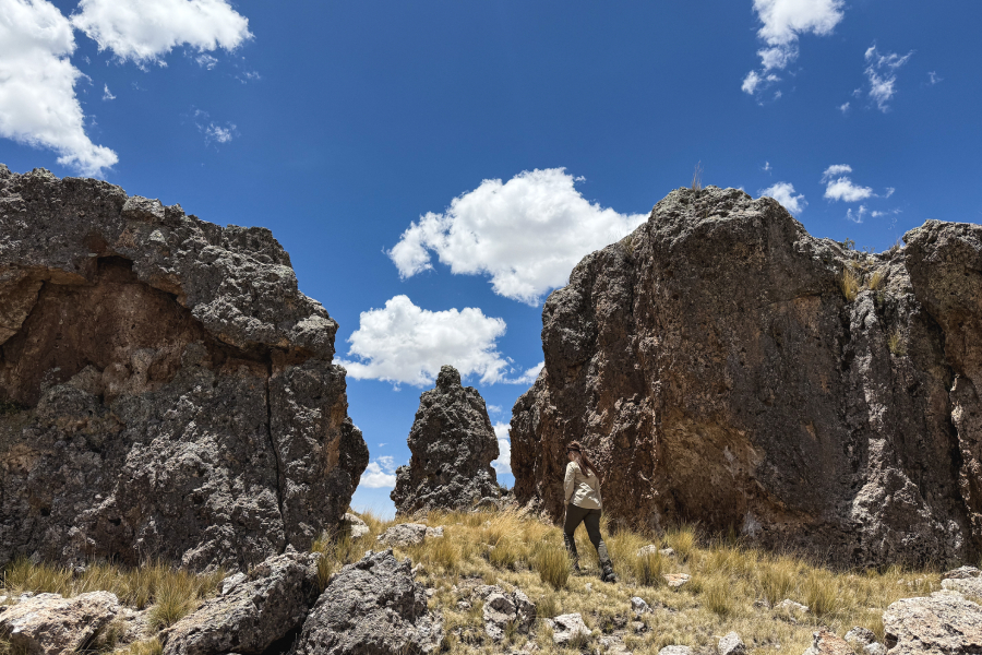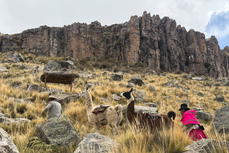 Junto aos moradores e uma simpática manada de lhamas, iniciamos nossa caminhada até o topo do Qawrani Tiyi, um local sagrado localizado no ponto mais alto da montanha principal da comunidade. Para chegar, atravessamos o Quñuna, uma estreita passagem rochosa parecida a uma caverna e onde a tradição convida a fazer um pedido. Do alto, a paisagem e os grandes paredões de pedra surgem como esculturas do tempo, moldadas por séculos de vento.